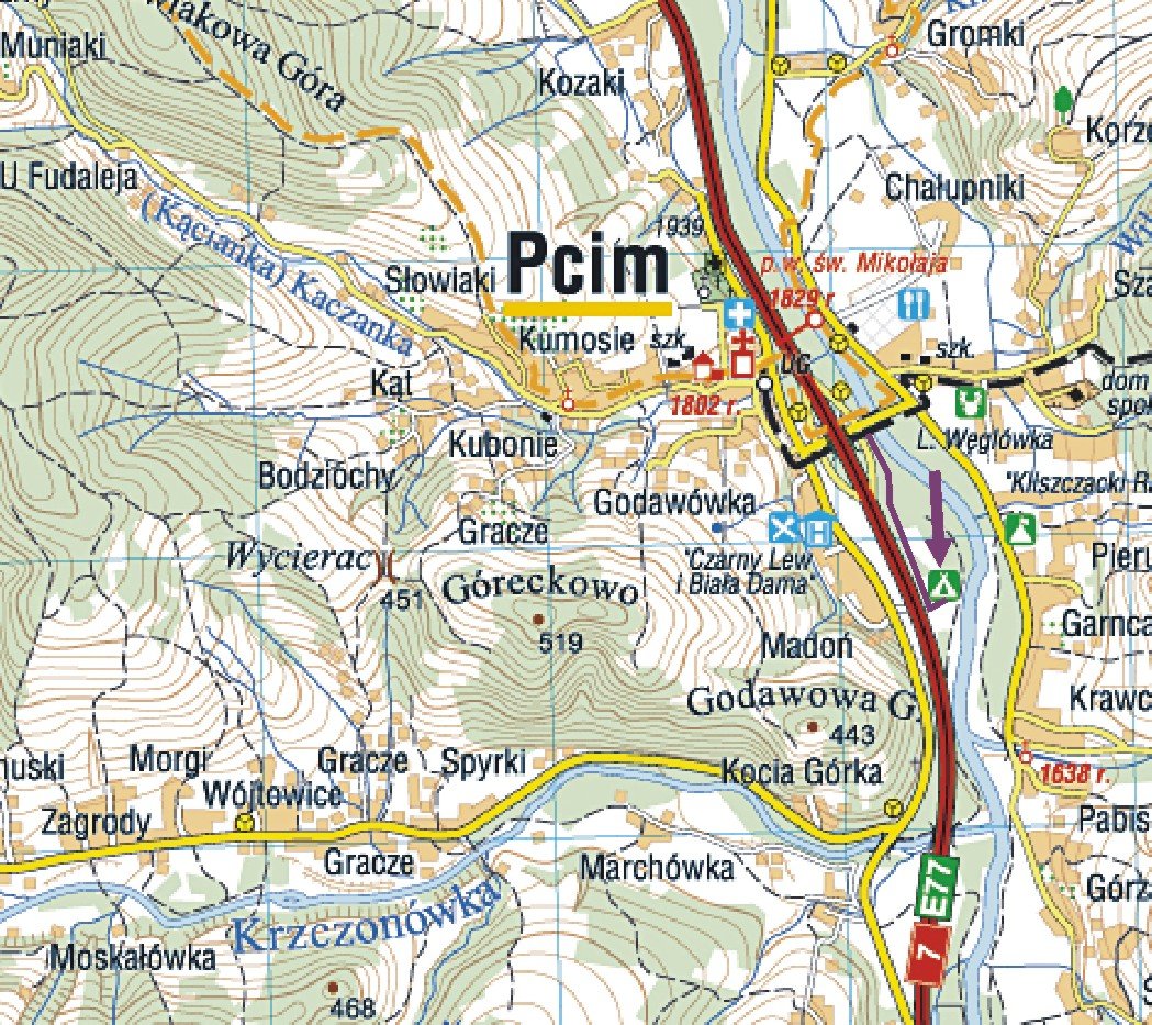 Camping Automobilklubu Krakowskiego znajduje się w miejscowości Pcim przy trasie do Zakopanego, 40 km od Krakowa - droga nr 7.